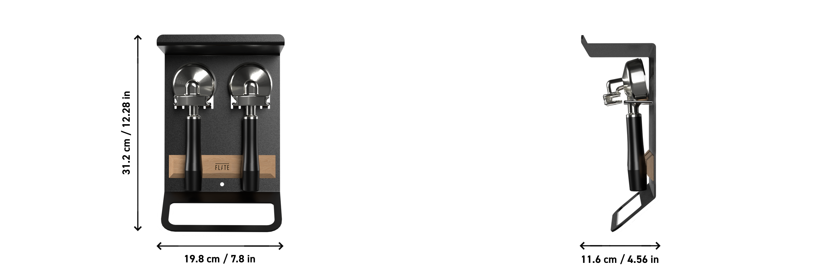 El estante de madera de roble aceitado no sólo es visualmente atractivo, sino que también puede colocarse y retirarse libremente mediante imanes integrados y sirve como espaciador perfecto para su portafiltro. Como el estante es de acero, también es posible acoplarle accesorios magnéticos, como un anillo dosificador.