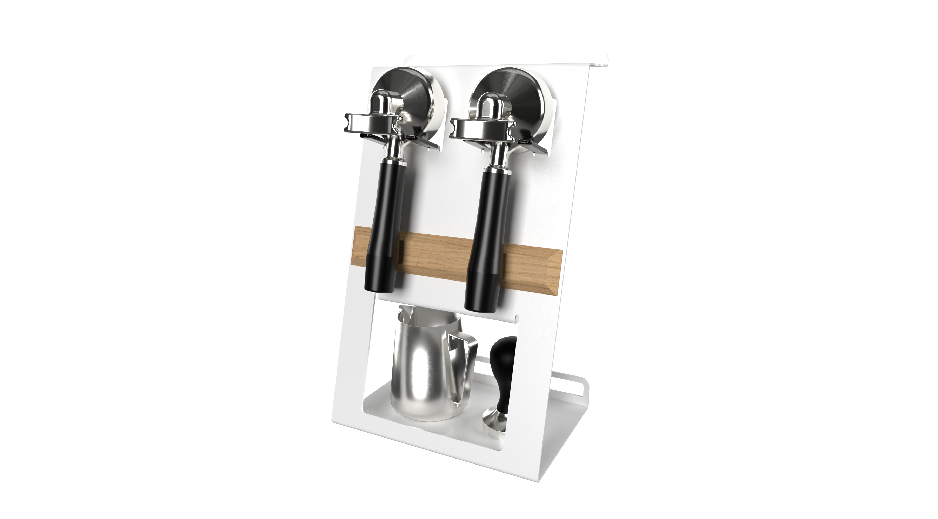 Descubra el FLATE® Barista Stand: su estación con portafiltro para accesorios de barista. La solución ideal para organizar perfectamente su rincón de café. El compañero perfecto para la rutina diaria del café, especialmente para los amantes del café con poco espacio. Este soporte es un artículo imprescindible que establece nuevos estándares para organizar su rincón del café y elimina la necesidad de montarlo en la pared. Nuestro soporte está diseñado para adaptarse a todos los modelos de portafiltros populares, incluidas las máquinas E61, Sage, De'Longhi, Bezzera, Rocket y muchas más.