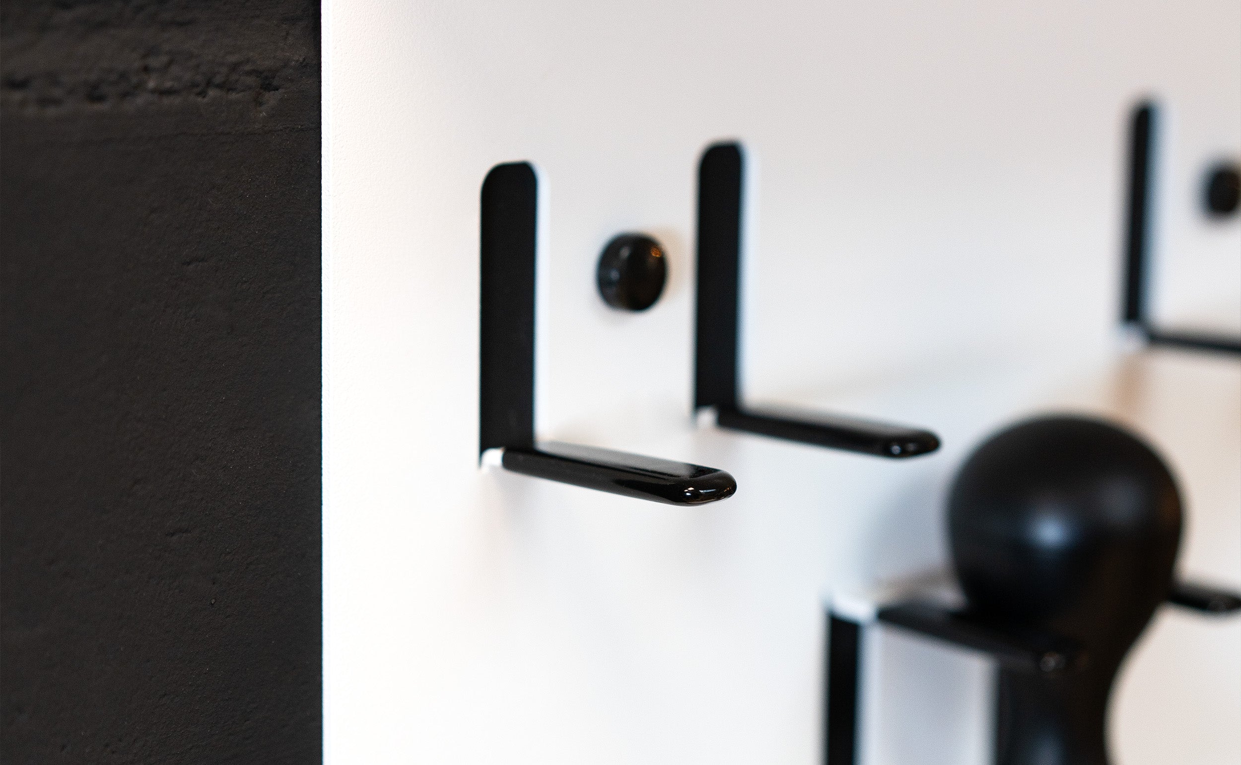 La estantería FLATE® Barista pone orden en su barra de café. Con tres soportes para portafiltros, un colgador para paños y dos estantes, es el complemento perfecto para cualquier máquina de portafiltros. Fabricada en acero con recubrimiento en polvo y apta para todos los modelos de portafiltros estándar.